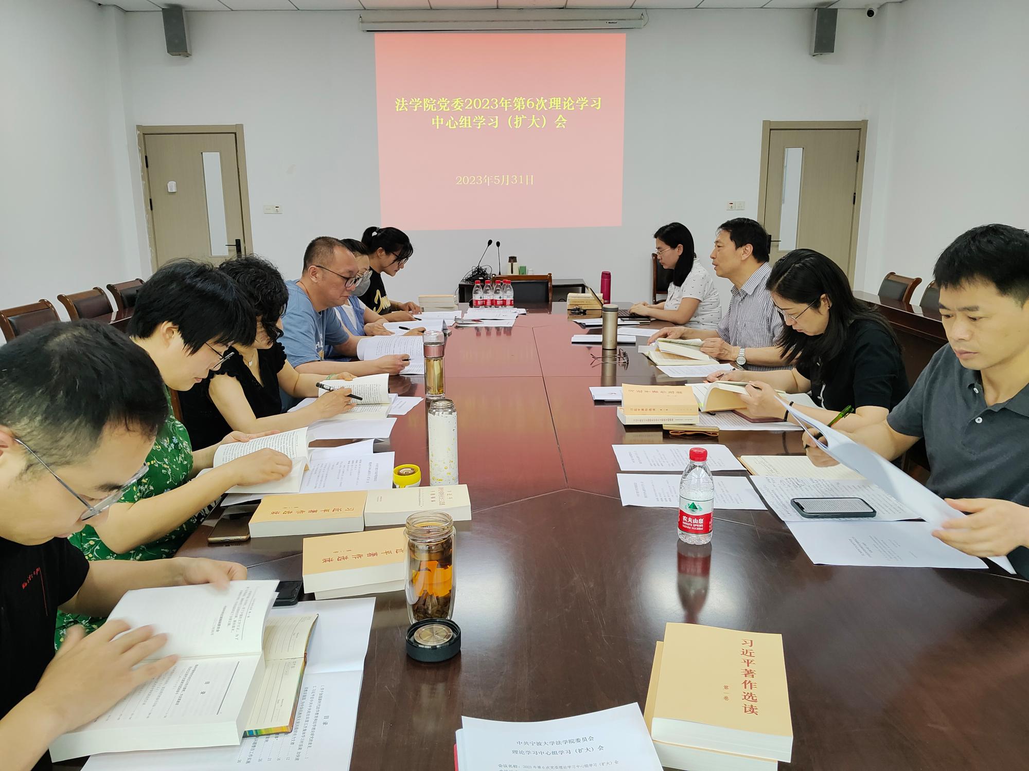 党委召开主题教育第4次集中学习研讨会暨2023第6次党委理论学习中心组学习(扩大)会。院党委书记孙芬娜主持学习会,学院班子参加学习会,法律系、公共管理系主任、副主任,专职组织员,研究生办、教务办、学科科研办主任列席。