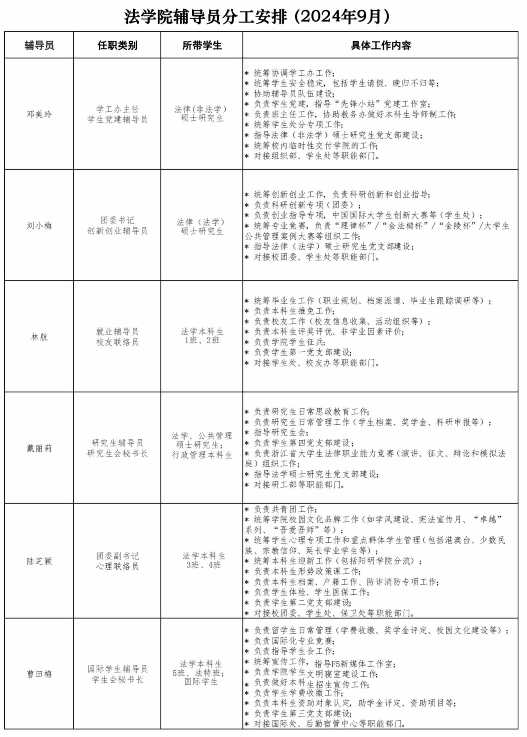 age动漫 学工办辅导员分工安排(2024年6月)