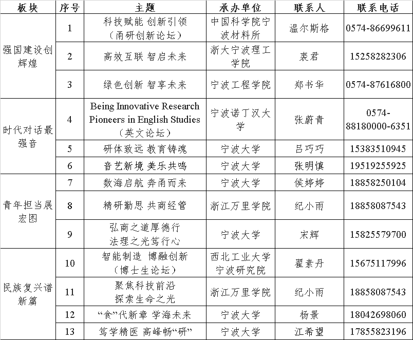 3.各论坛联系人、联系电话如下: