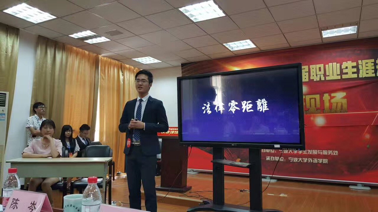 2003级法学毕业生钱亮”为职业目标探析对象,经过全面的自我剖析、定位探索等,确定了成为一名法制节日主持人的规划。在职业体验感悟阶段,俞竣文结合近期热点的“校园贷”问题,给在场观众呈现了现场说法。邓瑶同学则以“公诉检察官”这一目标为职业选择。从人民的名义热播剧展开,她生动的介绍了公诉检察官这一职业形象,并且以湖北省的感动力量“程然检察官”为驱动,向观众中描述了自身坚定的检察官寻梦之旅。