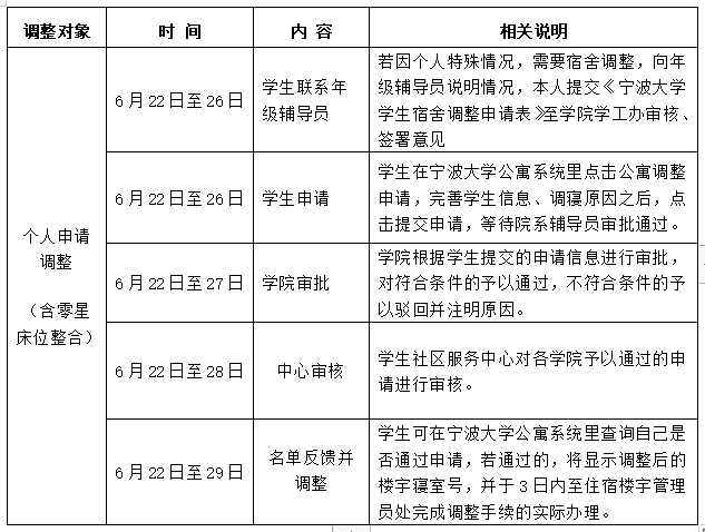 为了认真做好age动漫 2022年寝室调整工作,根据《age动漫 学生宿舍管理办法》(宁大政字〔2007〕104号)和《学生社区宿舍调配、调整管理办法》,为使寝室管理规范化、常态化,现将本学年末寝室调整相关安排通知如下,原则上学年中不受理。