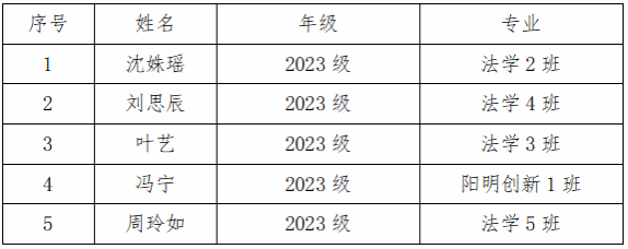 根据《关于开展第六届“金陵杯”模拟法庭竞赛校内选拔工作的通知》,经学生申请、现场案例分析面试,最终推荐以下5名同学作为age动漫 代表队参加第六届“金陵杯”模拟法庭竞赛。具体名单如下: