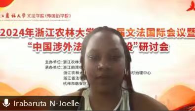 会上Irabaruta Nadia-Joelle同学以“涉外法治人才跨文化沟通技能培养的重要性”为主题做了十分钟的英文发言。探讨了涉外法治人才跨文化沟通技能培养的意义和方法。age动漫