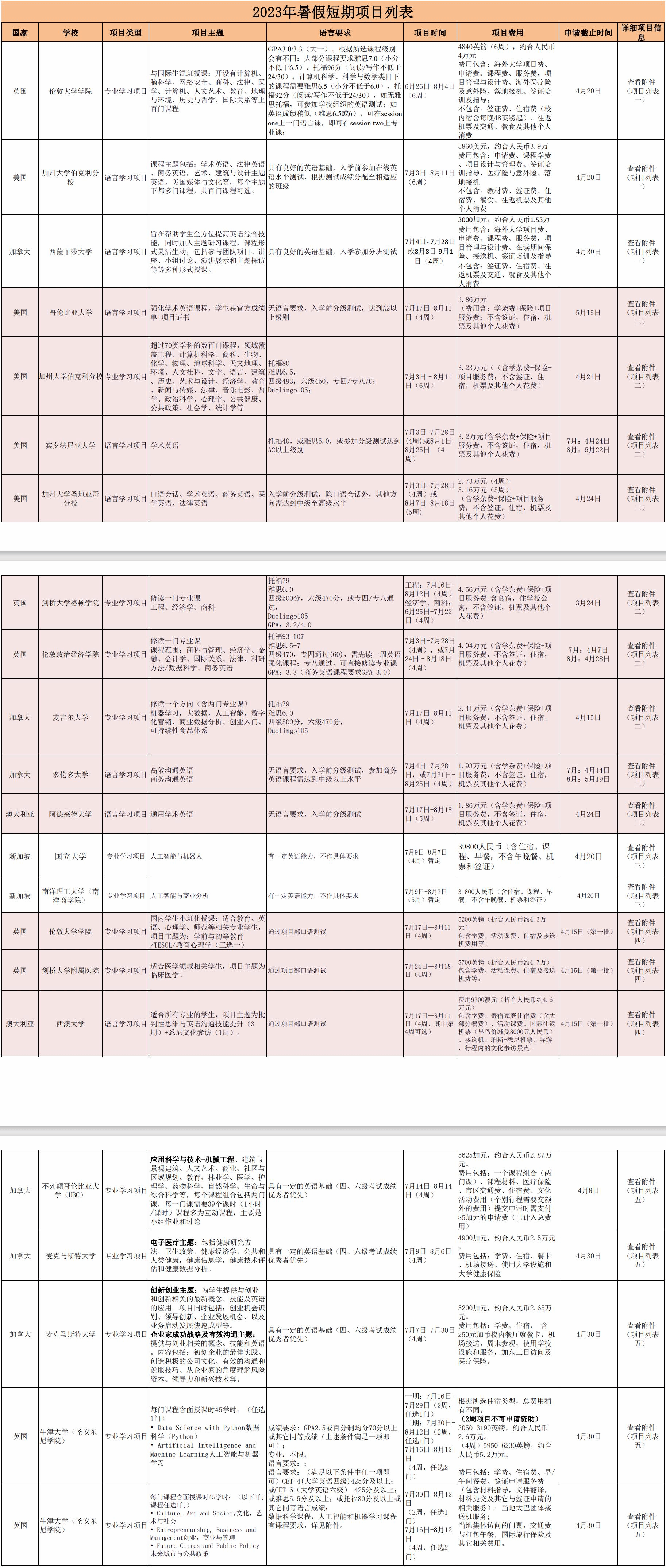 国际化发展,加快推进学校“双一流”建设,着力培养具有国际视野和国际竞争力的高素质人才,并感受海外校园学术及文化氛围、享受优质教学资源,现发布暑假海外高校项目及课程。(项目详情请见附件)。