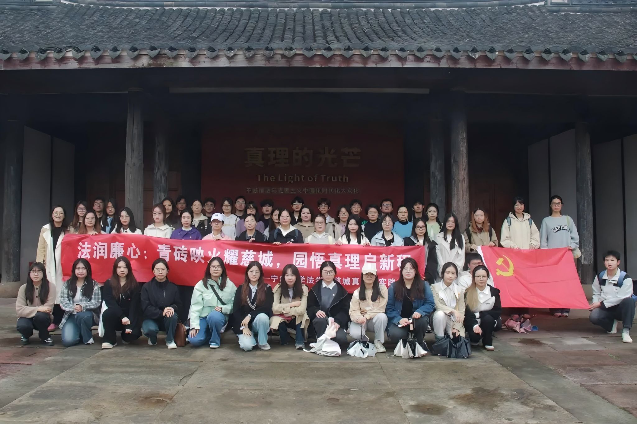2025年下半年分党校培训班在学工办辅导员邓美玲老师的带领下,以“青砖映火耀慈城,园悟真理启新程”为主题,组织全体发展对象与预备党员赴宁波慈城真理园开展沉浸式党校实践活动。在初冬细雨的洗礼中,青年学子循着马克思主义理论家冯定先生的思想足迹,感悟真理力量,筑牢廉洁防线,以实际行动诠释新时代法学青年的使命担当。