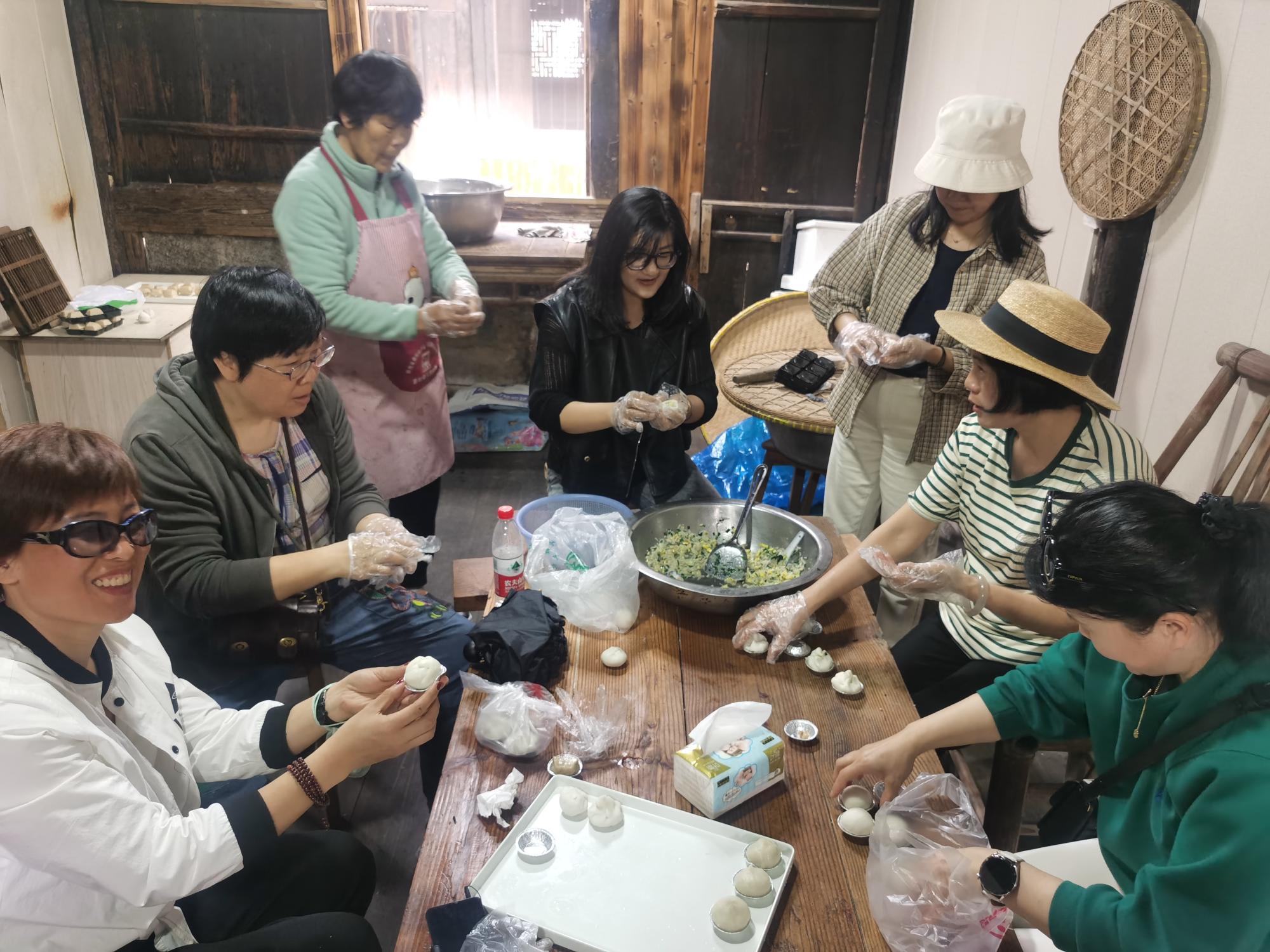 在参观完古村落后,老师们又体验了村落的传统美食。自己动手,丰衣足食。老师们饶有兴致体验制作过程,感受手工的乐趣。