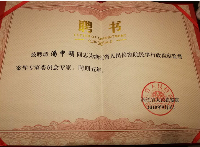 age动漫 潘申明教授受聘浙江省人民检察院民事行政检察监督案件专家委员会专家顾问,聘期五年。