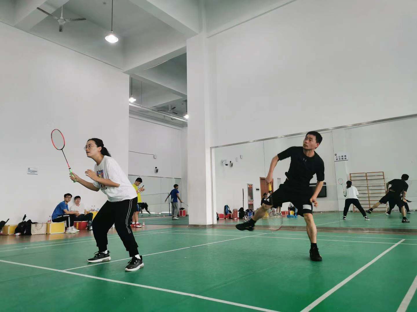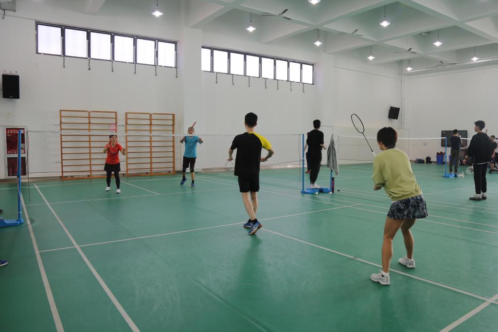 联谊赛共设男双、混双2个单项,根据报名情况确定分组和竞赛顺序,采用小组赛晋级赛制,比赛采用三局两胜制,每局21分,每球得分制。比赛开始前,参赛选手早早来到羽毛球馆等候比赛,并且做好了充分的热身锻炼。工作人员尽职尽责,公平公正,保障了整个羽毛球联谊的顺利进行。