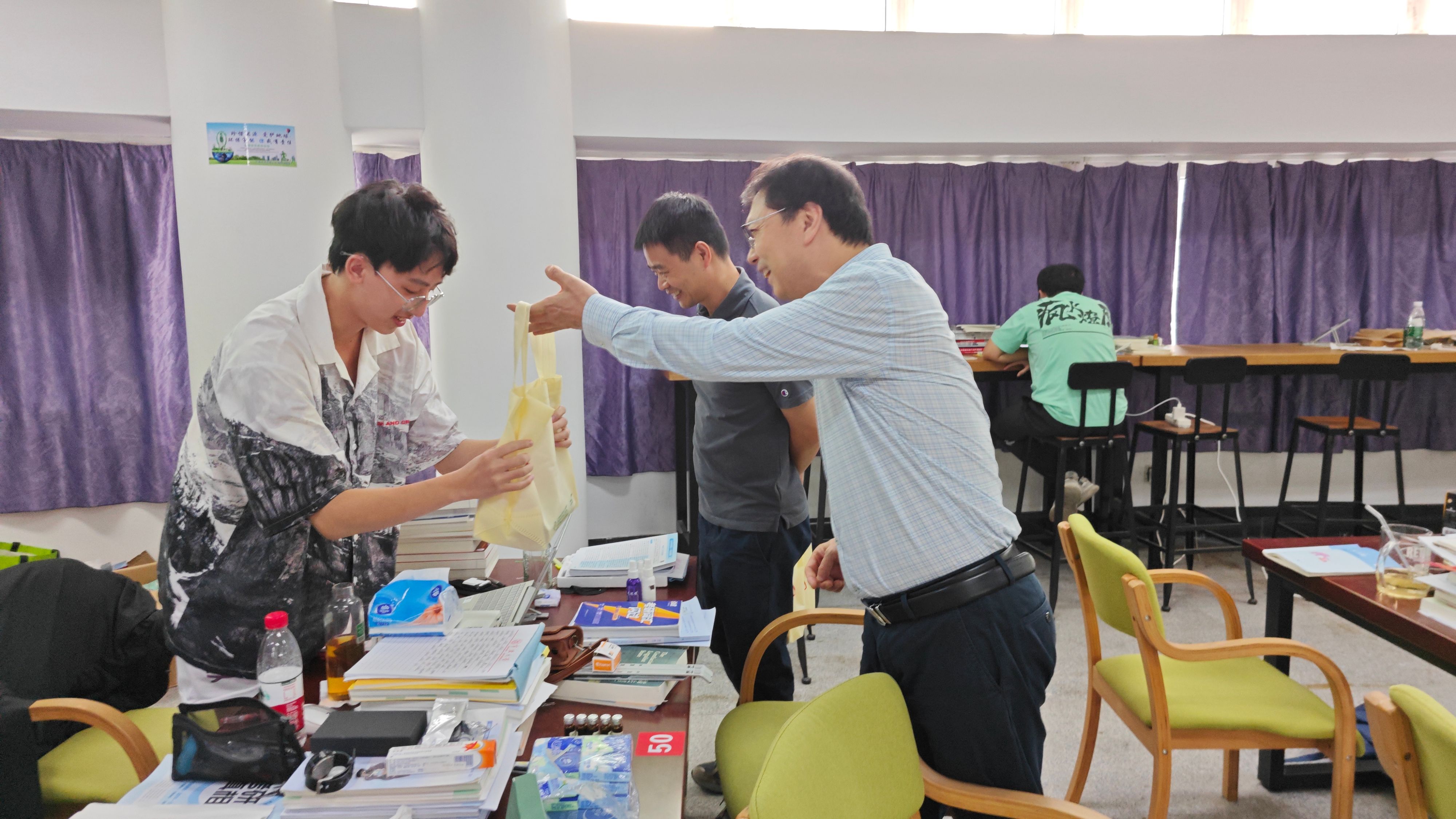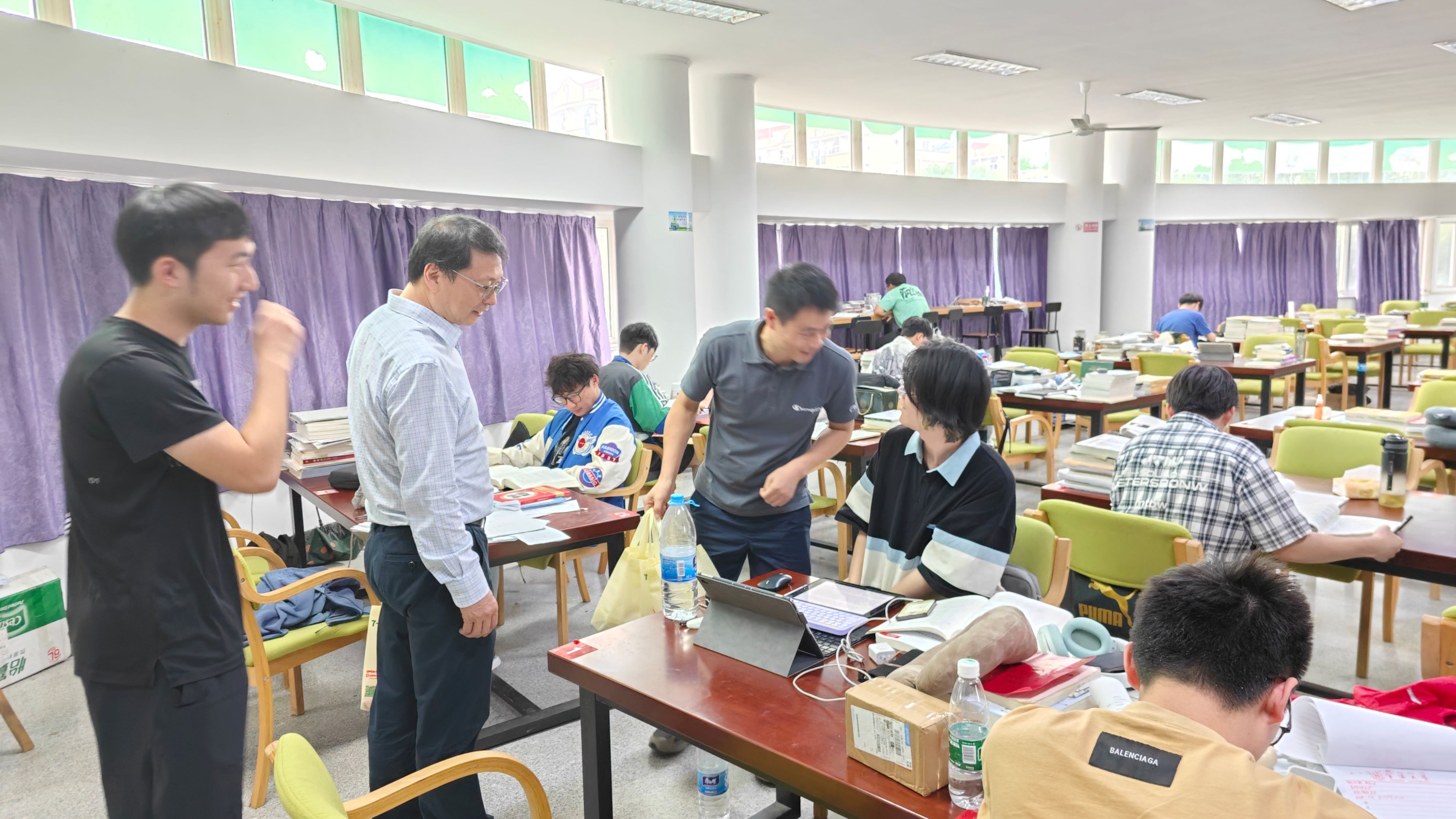 院长梁开银、党委副书记吴敏、辅导员林航一行走访真诚图书馆和本部公寓,看望慰问暑假留校备考的2024届学生。