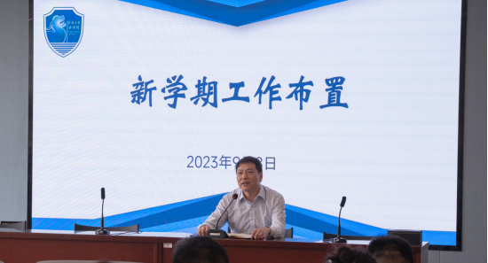 院长梁开银通报了上学期学院取得了很多开创性的业绩,成绩喜人。新学期还有很多挑战要面对,他希望全院上下要围绕学科建设和博士点申报两个中心工作齐心协力,步子再大一些,努力再多一点,看到差距,找准定位,乘势而上,把主题教育开展中取得的成绩和经验运用到教学科研工作之中去,高质量推进学院跨越式发展。