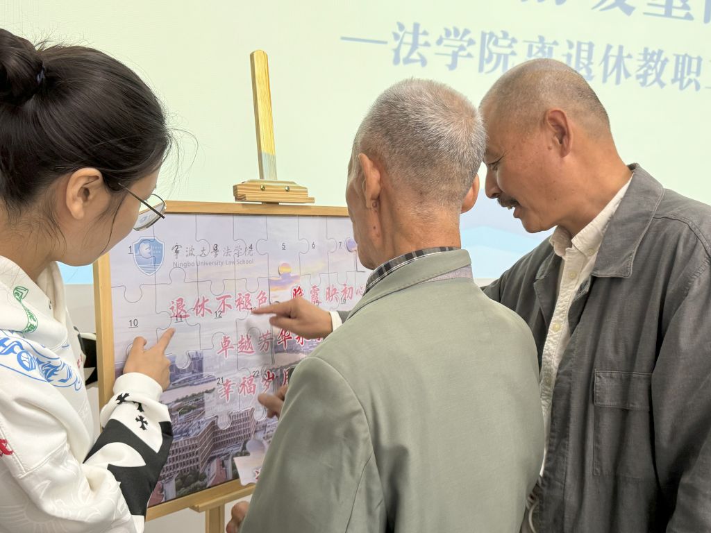 会后,离退休教职工参与了现场拼图互动,“退休不褪色,晚霞映初心,卓跃芳华永不老,幸福岁月总是诗”,这句话也寓意着学院对老教职工们的祝福。