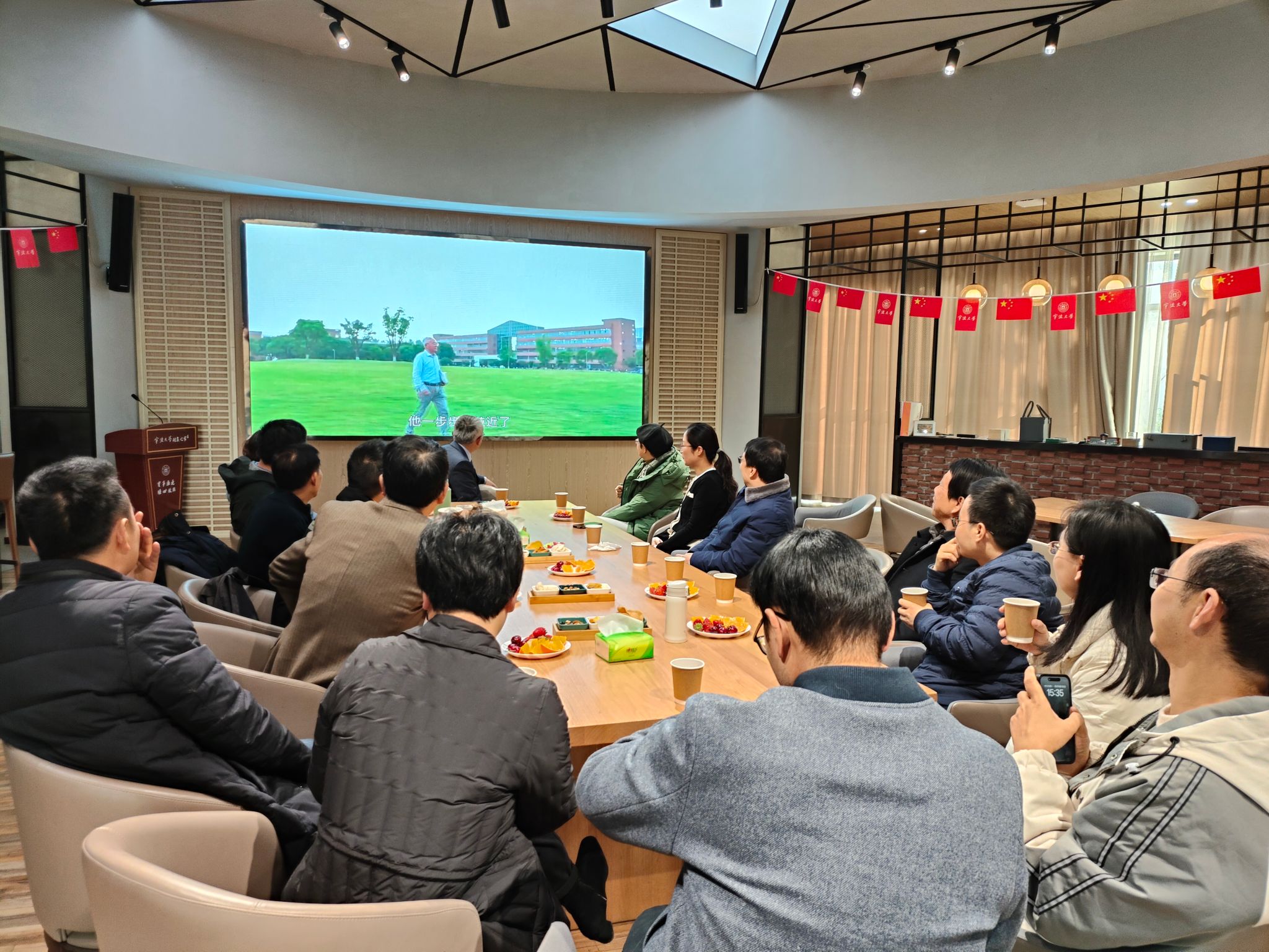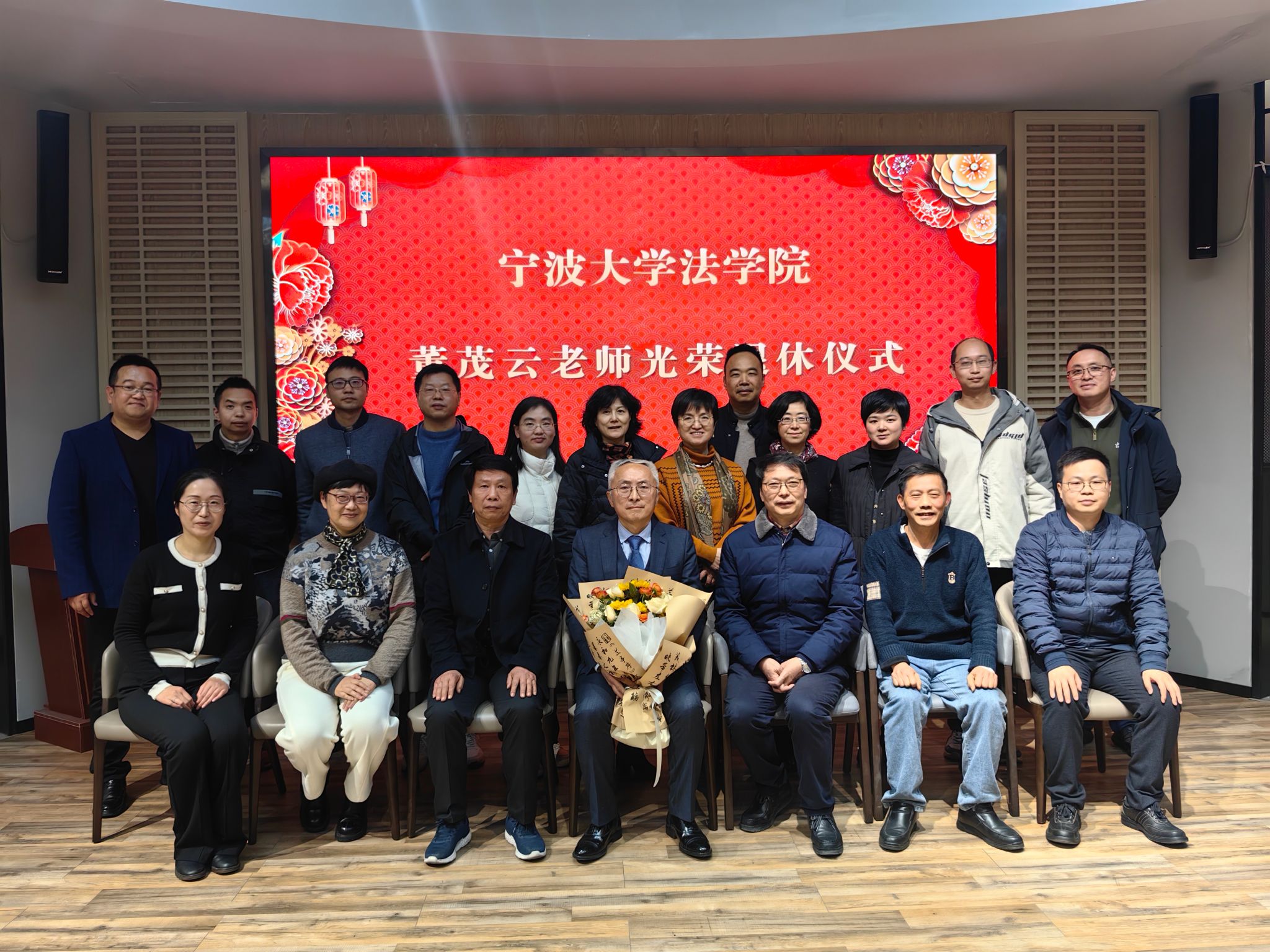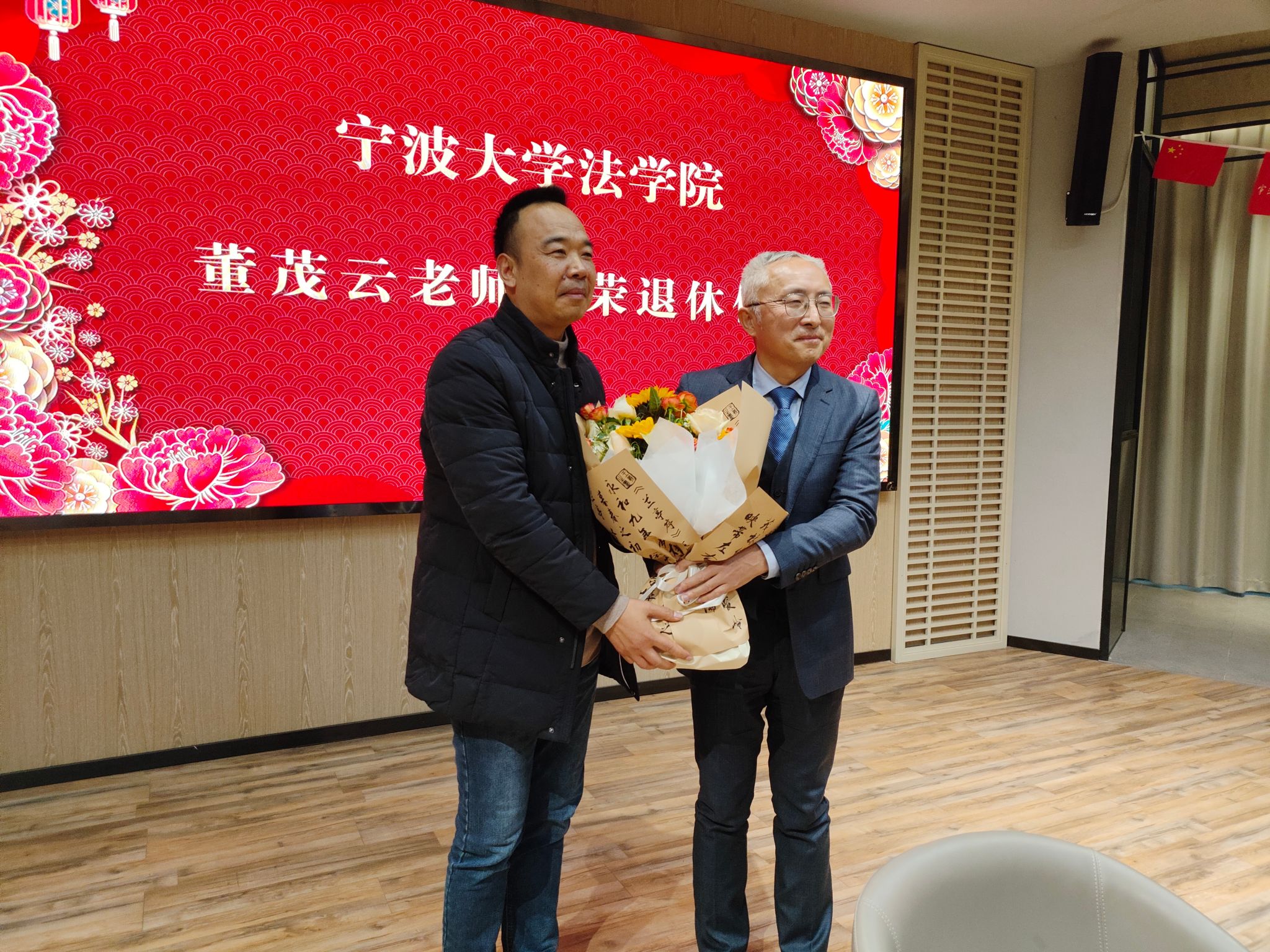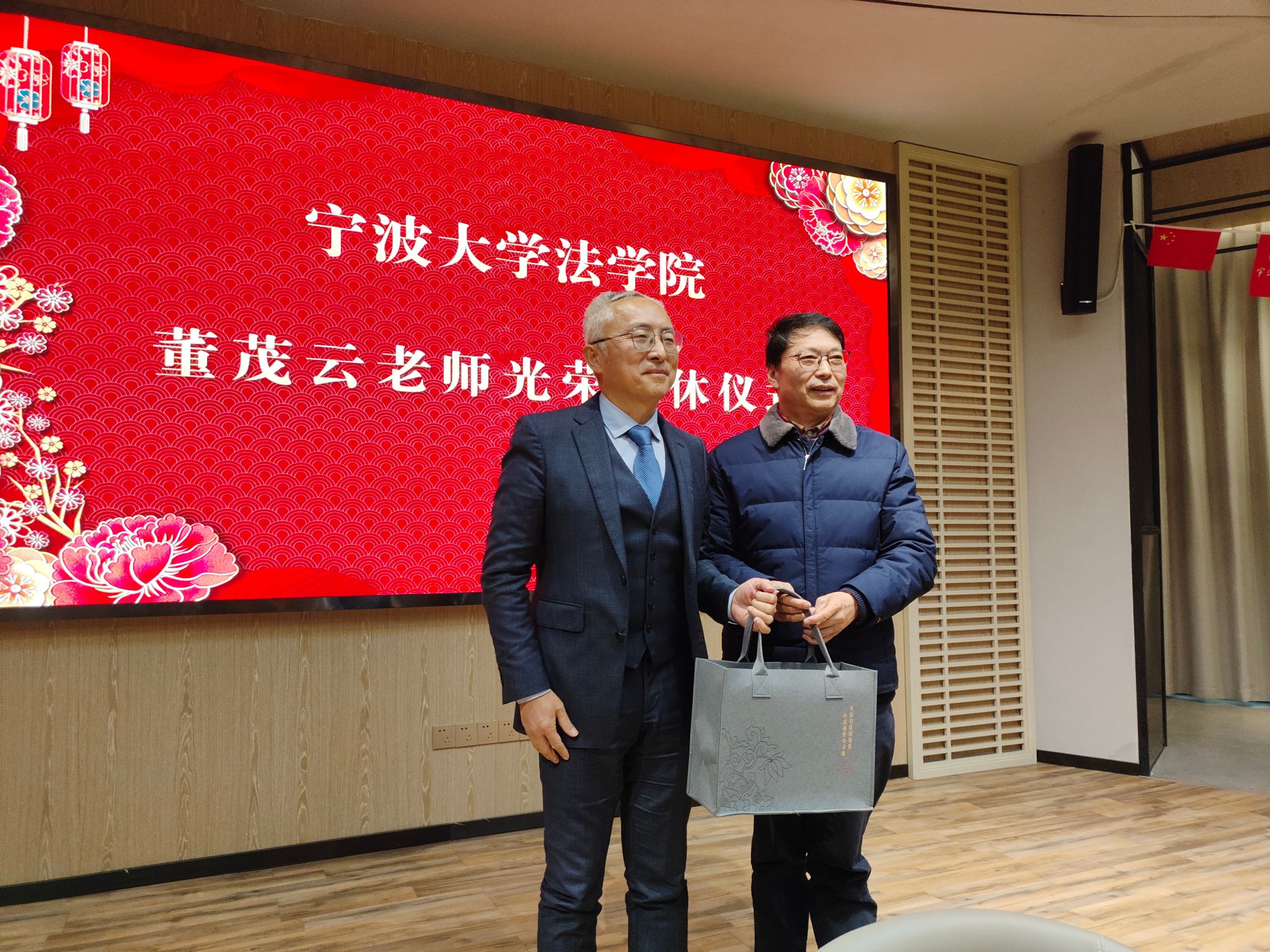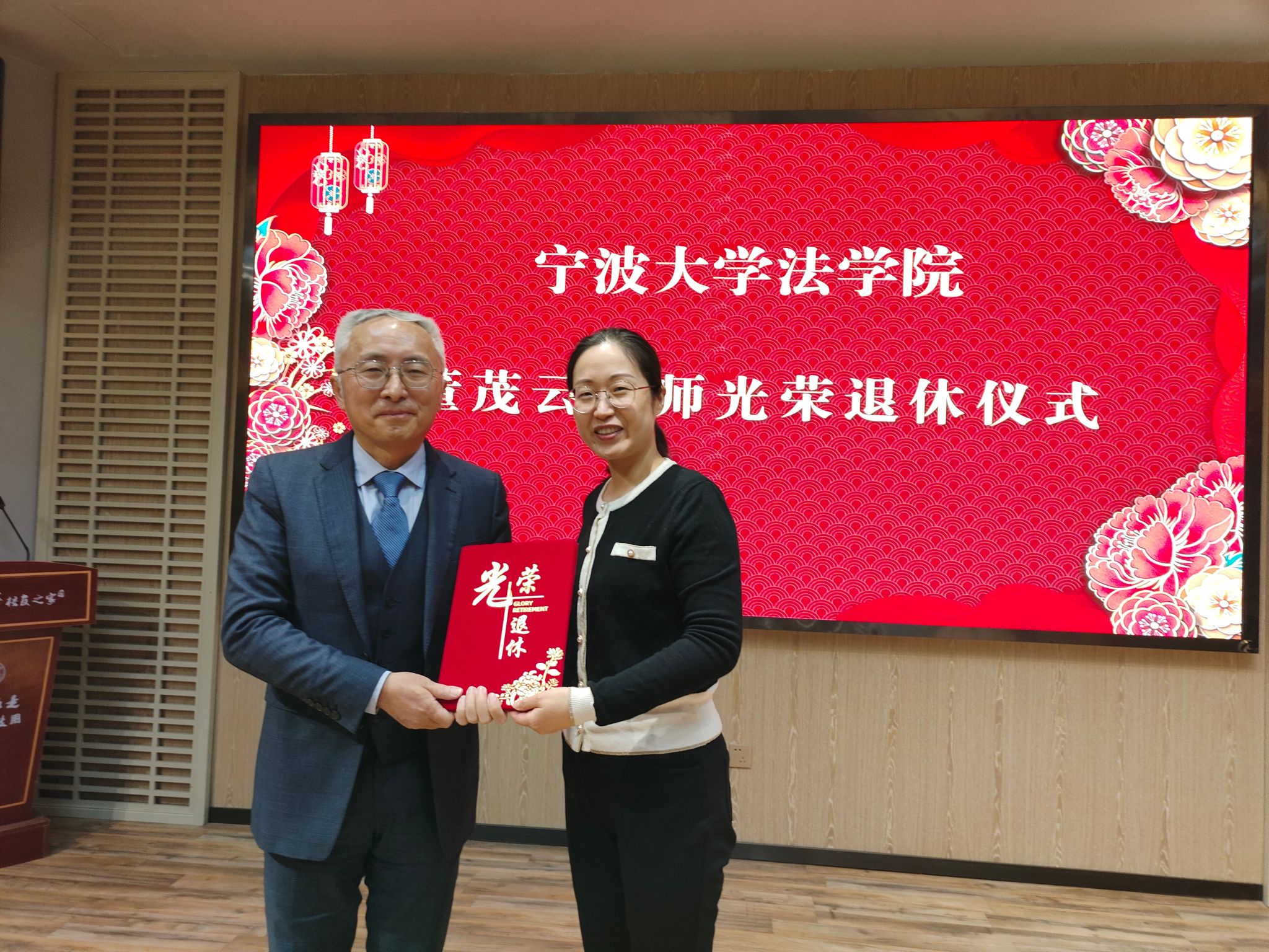 仪式开始前播放了董茂云老师在宁大耕耘的视频短片。曾经挥斥方遒的翩翩少年,如今受人尊敬的最美宁大教授,大家纷纷用掌声表达了对董老师的谢意和不舍。