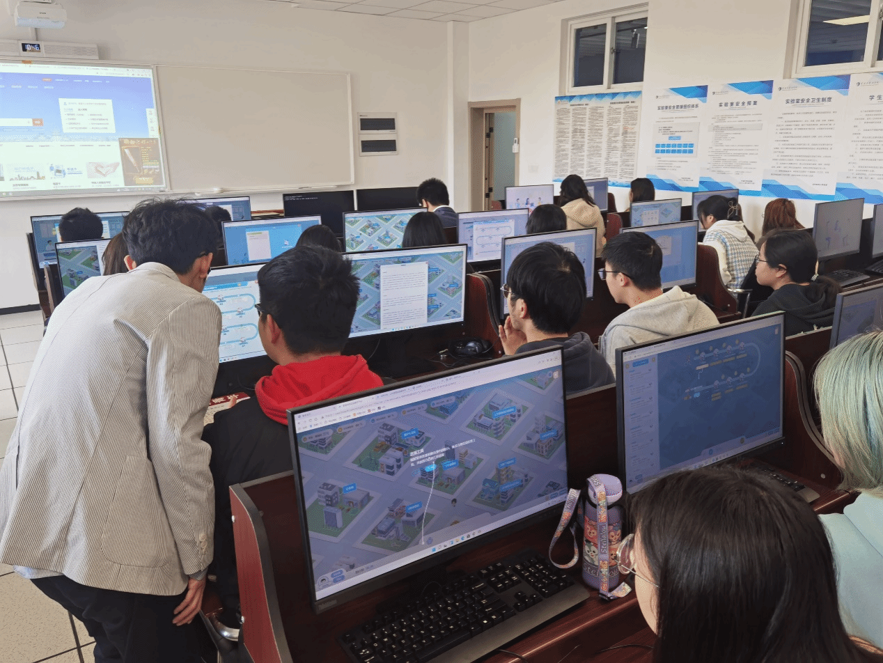 下午的课程中,企业专家又带领学生进入了3D还原的公共危机应急决策沙盘对抗平台,模拟处置化工企业突发火灾事故后的应急救援决策。将当前社会热点的突发火情公共危机事件融入应急处置专业流程,从报警与接警、先期处置、组织机构构建、现场指挥部的应急指挥与协调、人员和物资调配、任务分工、现场警戒、人员疏散、现场专业救援等应急管理者、专业应急救援人员和普通大众等多角色分工合作的虚拟场景等多个环节开展多部门协同模拟仿真应急救援。