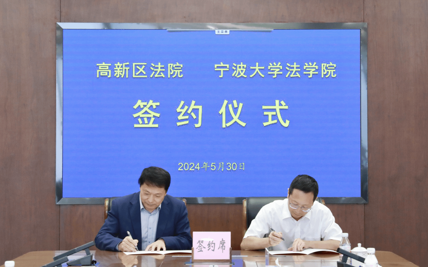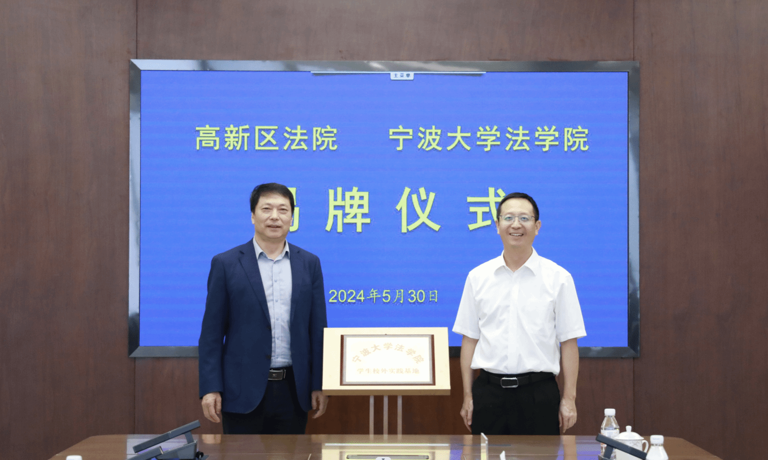 院长梁开银教授、副院长何跃军教授、法律硕士教育中心副主任张文松博士一行到访宁波高新区法院,就开展院校合作,举行实习实践基地签约、揭牌仪式。高新区法院郑重院长、毛娇副院长、政治处檀丹霞主任、执行局谢国斌局长和乐嘉波副庭长一行接待了来访,并一同参观院史室、诉服中心、廉政文化长廊,观看高新区法院工作宣传片。