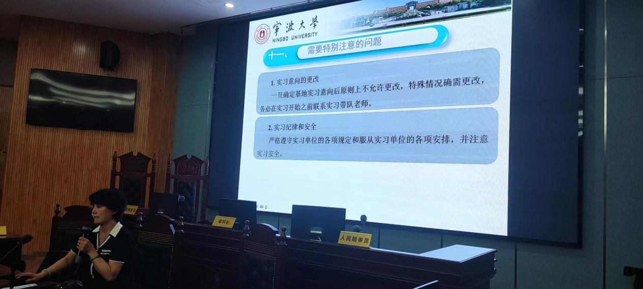 谢晓彬老师从法学专业毕业实习的时间、形式、内容、报名、纪律、考核、注意事项、安全等方面向同学们详细介绍了法学毕业实习的课程及要求,希望同学们根据自己的学习计划安排好毕业实习,珍惜机会、学以致用,为后续的工作和学习打牢实践基础。