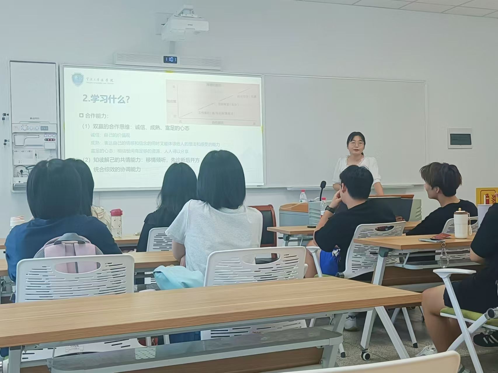 研究生办主任于蕾向大家介绍了研究生办的分工与研究生培养工作。学工办主任邓美玲向大家介绍了学工办的分工与研究生管理工作。