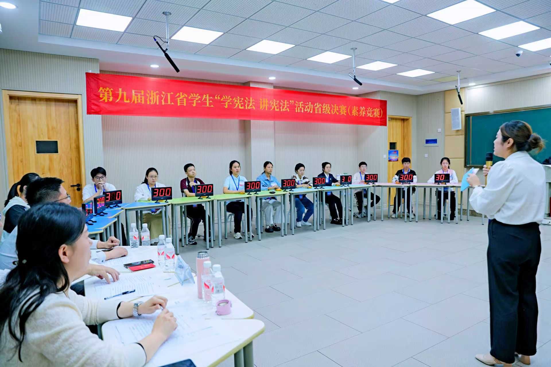 省教育厅总督学陈仁坚出席活动并致辞,省法院党组成员、副院长程建乐,省检察院副检察长柴志华,省司法厅党委委员、副厅长徐海江出席活动并为获奖选手颁奖,衢州市人民政府副市长杨圆华出席活动。本届浙江省学生“学宪法 讲宪法”决赛沿用小学、初中、高中、高校四个组别及演讲比赛和素养竞赛两个环节。
