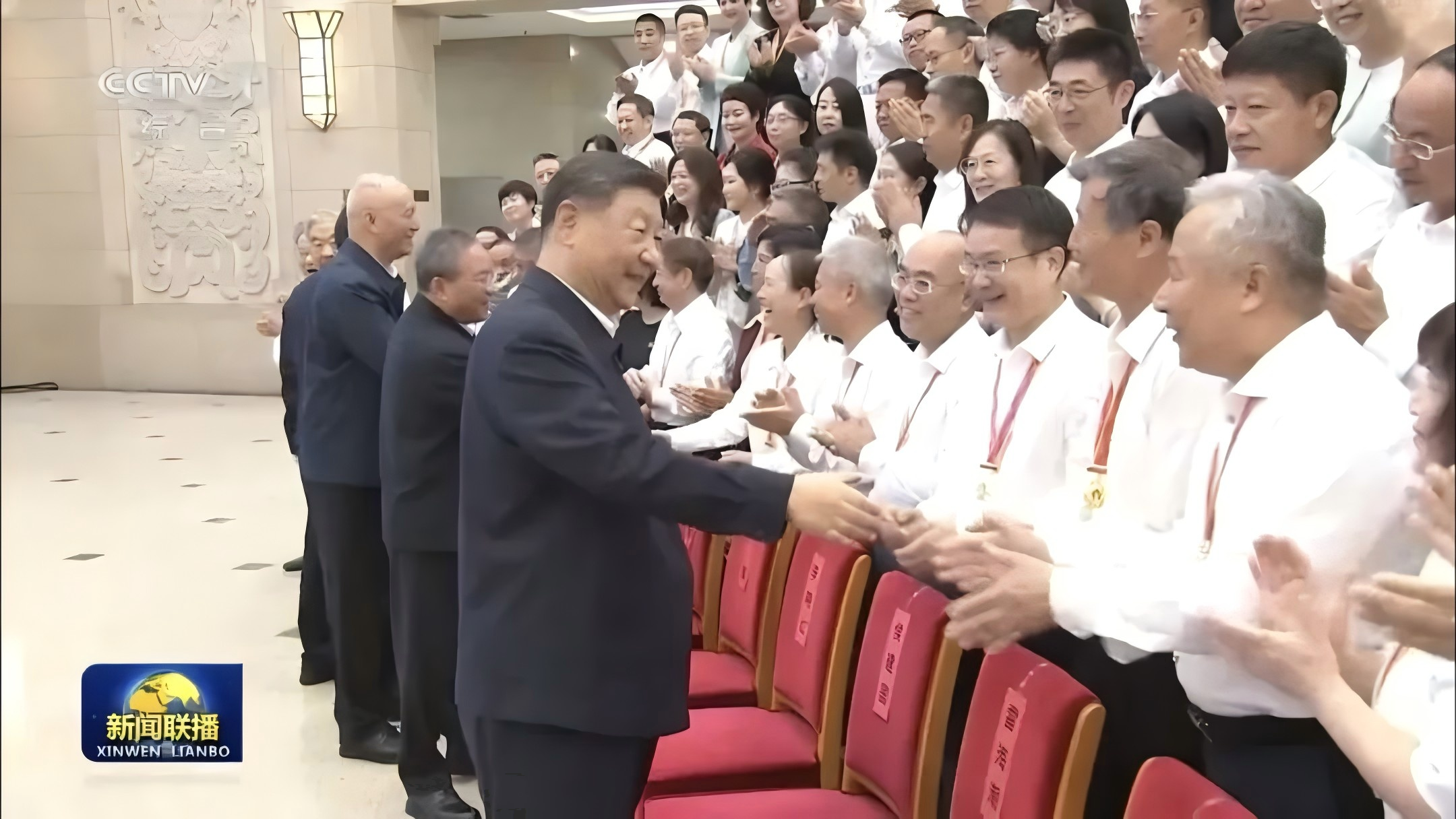 接见现场,习近平总书记、李强总理等党和国家领导人与郑曙光教授亲切握手时,郑曙光教授向首长报告“我来自age动漫
