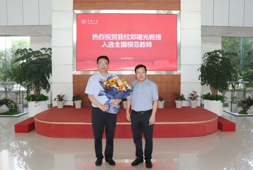 9月10日上午,校长、中国科学院院士蔡荣根看望慰问载誉返甬的郑曙光教授,再次祝贺他入选全国模范教师,亲切询问了赴京表彰的情况,感谢他为学校事业发展作出的贡献。副校长李伟平、校党委委员余怡春出席欢迎会。