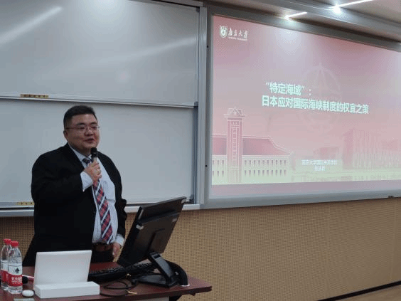 张诗奡博士将授课分为四个部分:特定海域的设定,国际海峡航行制度,日本的政策考量与效果,国际法与国家利益。他系统而生动地描述了日本对宗谷海峡、津轻海峡、对马海峡等特定海域领海宽度的特殊设定,重点分析了国际海峡航行制度的具体内容,包括过境通行制和强化的无害通过制度的适用差异,详细阐述了日本在国际海峡制度中的政策考量及效果。张博士从一个较小的视角入手,以渊博而深厚的国际法知识与技术性分析,成功地引导大家思考国际法的不确定性问题,以及如何在国际法规则与国家利益的矛盾间找到平衡点。