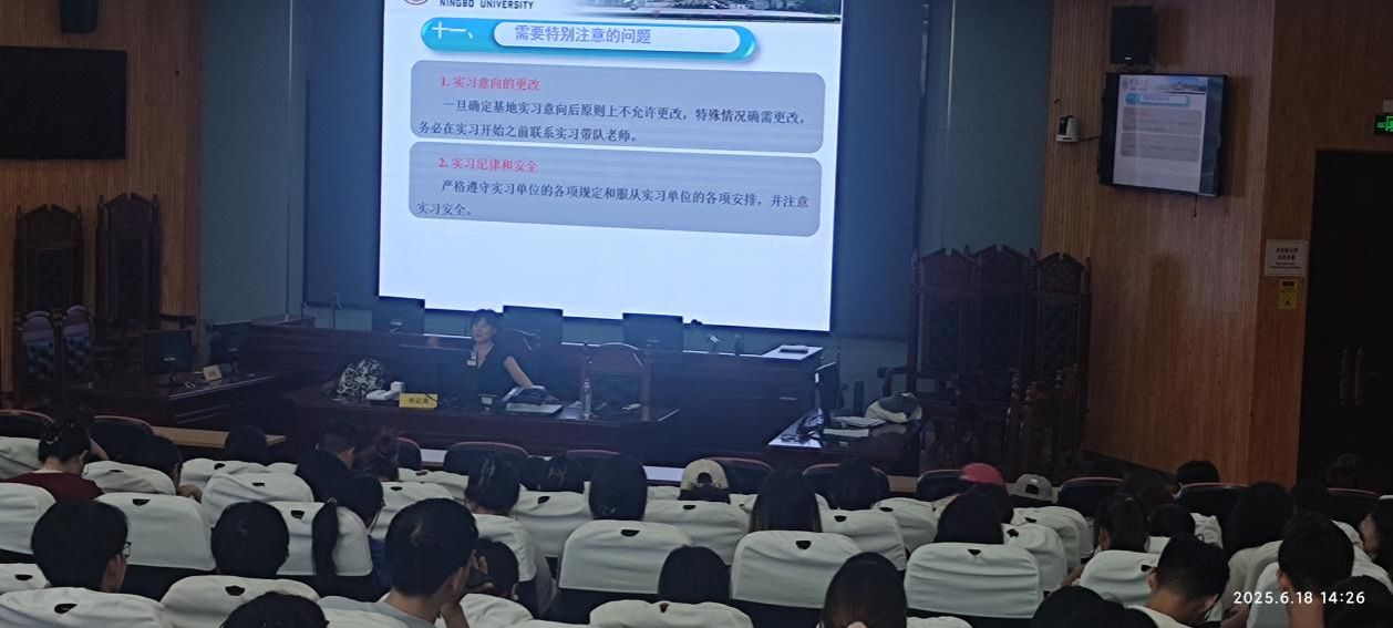 谢晓彬老师重点强调了毕业实习期间的纪律和安全问题,要求全体学生在毕业实习过程中严格遵守相关纪律要求,特殊情况进行报备;提高安全意识、把安全放在首位、谨防各类诈骗、切实保护好人身及财产安全。