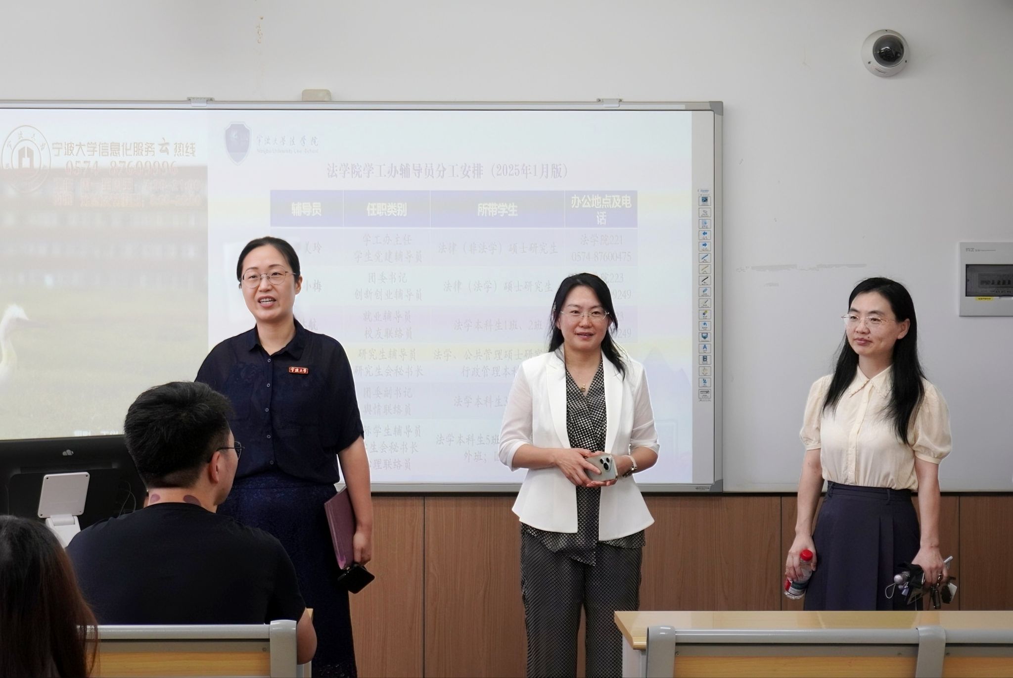 在本部阶五教室召开了“凝新携手,梦启法苑”2024级本科生专业分流见面会。学院党政领导班子、系主任、班主任、教务和学工老师,以及全体2024级本科生参加了见面会,见面会由学工办主任邓美玲主持。见面会后各班召开主题班会,院党委书记孙芬娜、院党委副书记谢果凰、副院长王婉娟同步走访并关心了解各班级情况。