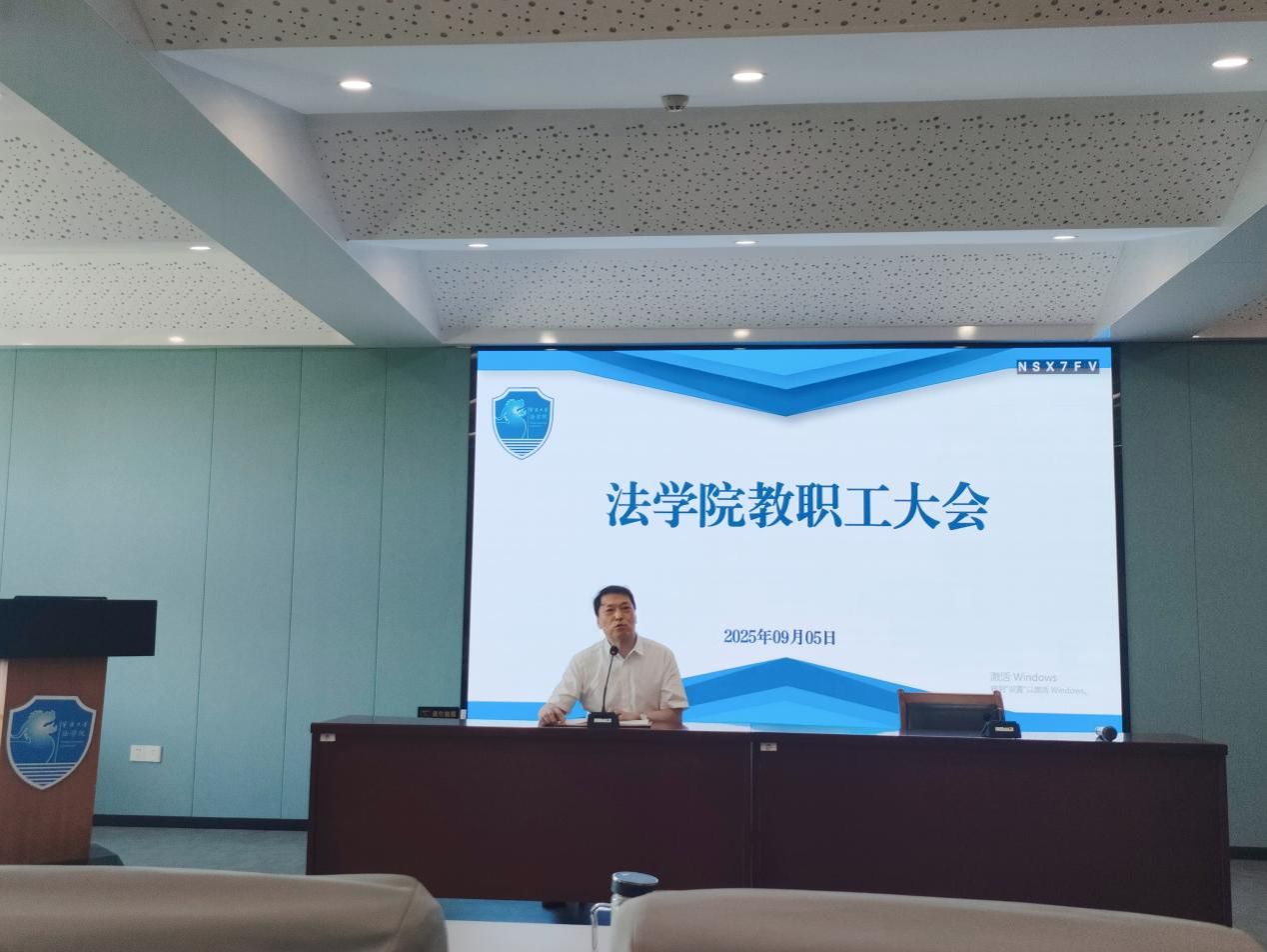 2025年暑期中层领导干部扩大学习会精神,并报告了近期工作进展:今年招生工作高质量完成,法学专业录取分数全校最高,涉外法治创新班在省内宣传效果显著;暑期实验室全面升级,为涉外法治人才培养奠定硬件基础;博士点申报稳步推进,涉外法治赛事承办工作取得突破。社会服务方面,成功举办两场学术会议,包括宁波市涉外法治研究会秘书处协办的跨境物流法律问题的研讨会和由宁波立法研究院承办的全国地方高质量立法的内涵学术研讨会,均获上级高度肯定。