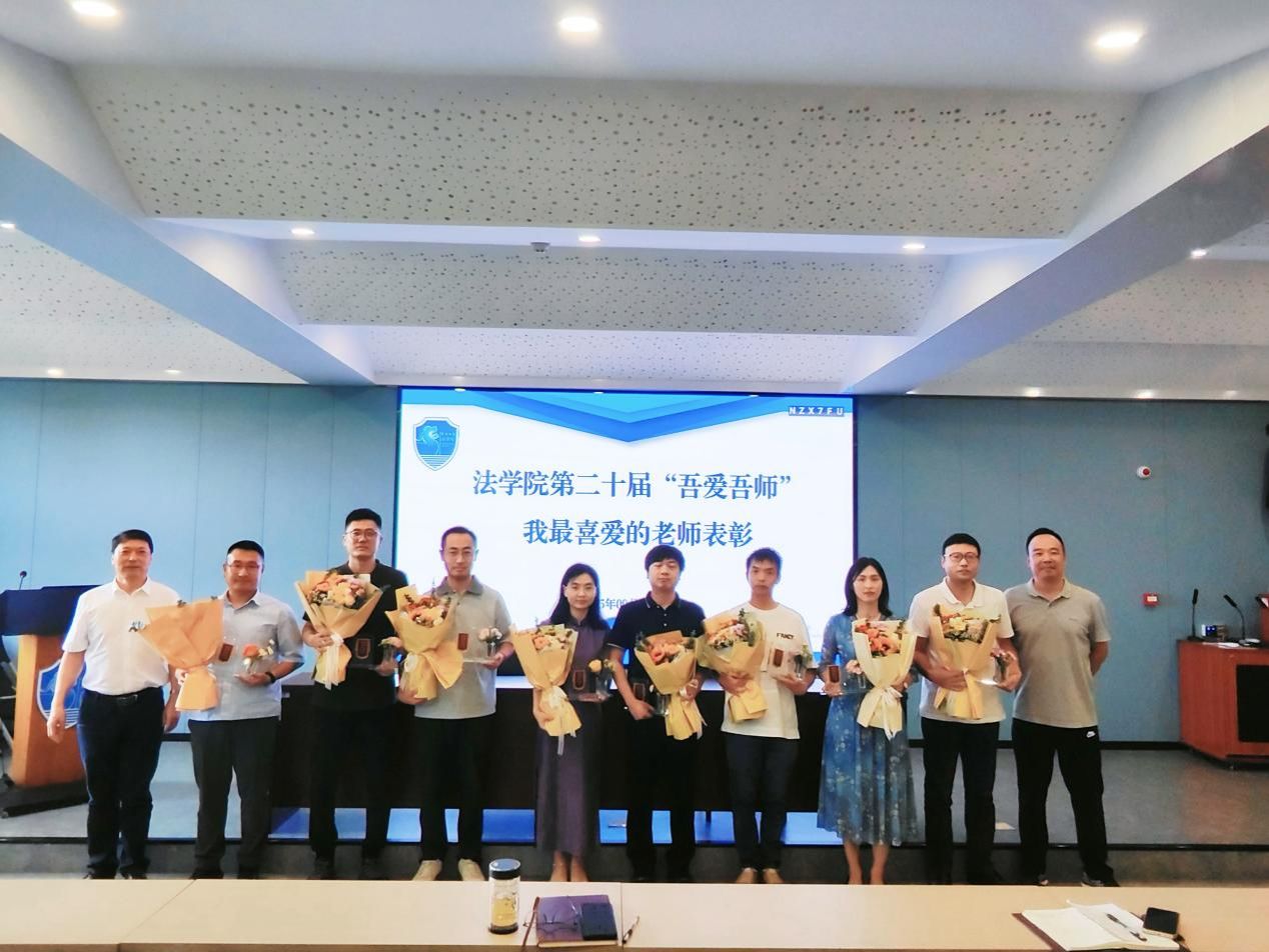 吾爱吾师,桃李有声。 “吾爱吾师”我最喜爱的老师评选结果揭晓,法律系吕双全、朱亚芬、朱朝晖、乔宜梦、余地、张梁、魏丽,公共管理系王婉娟、阳晓伟、张尧十位老师光荣上榜。工会主席王伟、院长梁开银为老师们颁发学生设计的“小獬豸”奖杯,并动情寄语:“金杯银杯,不如学生的口碑;金奖银奖,不如学生的夸奖。”