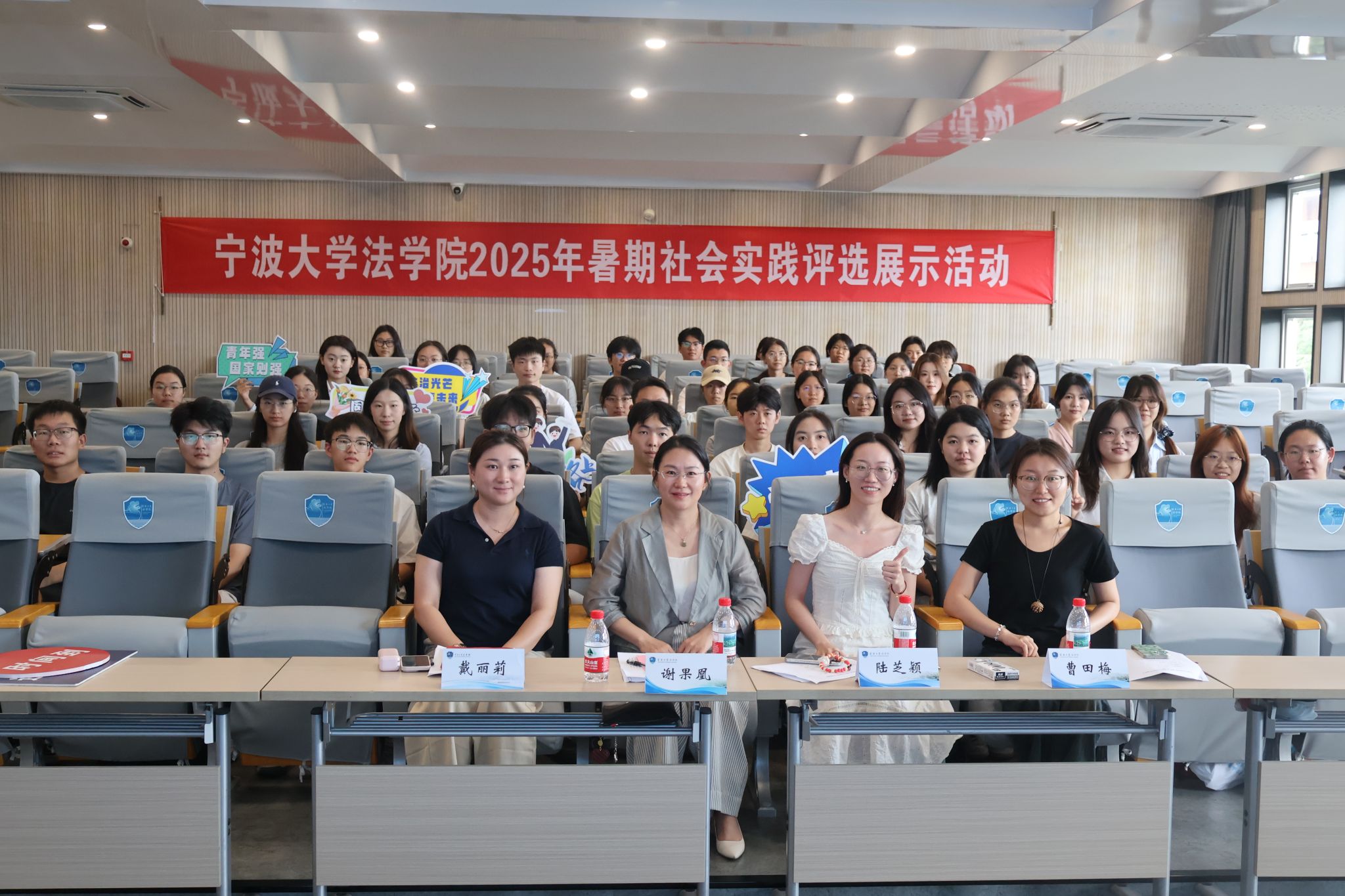 2025年暑期社会实践评选展示活动于9月24日下午在217报告厅顺利举行。经过前期对总结性实践报告的文本评审,并综合各团队开展活动的实际表现,最终15支优秀团队进入了现场汇报答辩环节。院党委副书记谢果凰、学工办辅导员戴丽莉、陆芝颖、曹田梅共同参与本次活动。