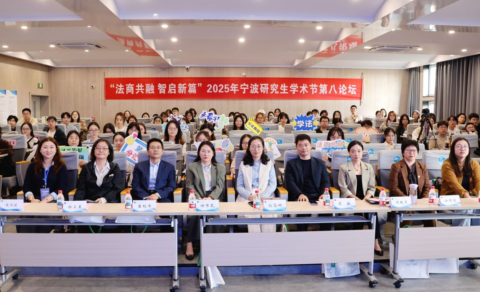 党委书记孙芬娜致开幕辞。她代表主办单位和承办单位向与会领导、专家和师生表示诚挚感谢,指出宁波研究生学术节历经十八载发展,已成为区域研究生学术交流的重要平台。她强调,本次论坛以“AI赋能”为主题,共收到46篇来自多所高校的学术论文,涵盖数字经济法治、企业合规管理、农村集体经济组织治理等多个前沿领域,充分展现了青年学子对智能化、跨学科研究的热情与探索。孙书记鼓励汇报同学从容展示、虚心求教,期待评委专家精准点拨,共同营造开放活跃的学术对话氛围。