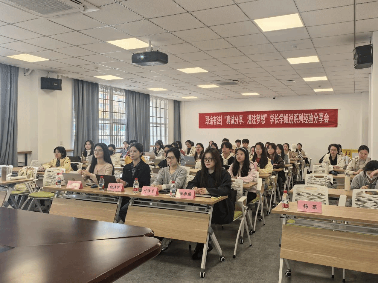 学生会于11月5日成功举办了“真诚分享,灌注梦想”学长学姐说经验分享会——保研篇。本次活动特邀五位学姐,围绕院校定位、材料准备、双考统筹、面试实战等核心环节展开深度分享,为法学生带来一场干货密集的保研指南。