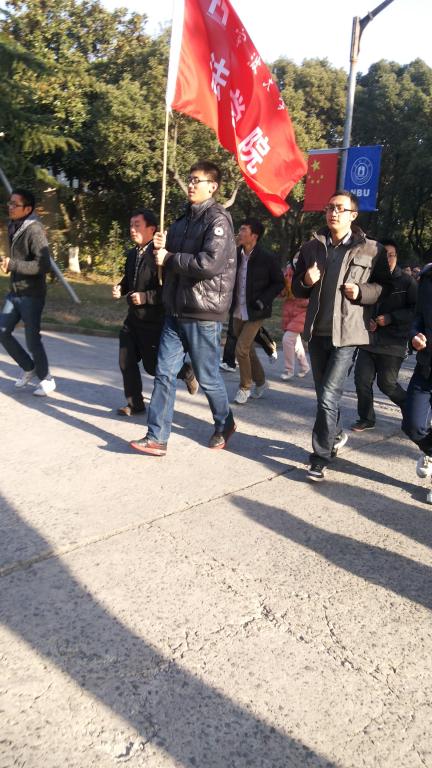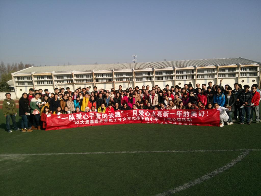 2014年1月1日清晨,法院学子在安中大楼门前集合组成爱心长跑队,队伍从田径场出发,途经阳明路、北大门、祖望路、安中大楼等地,一路上大家在鲜红院旗的引领下,排成四路纵队激情飞扬的奔跑。长跑结束,参加的同学获得一张明信片写出自己新年对外来民工子弟学生的励志祝福。大家纷纷表示希望通过参加这样的活动,以自己的行动为农民工子弟学校的孩子们献出自己的一点爱心,让他们感受到严寒冬季中的一丝温暖。