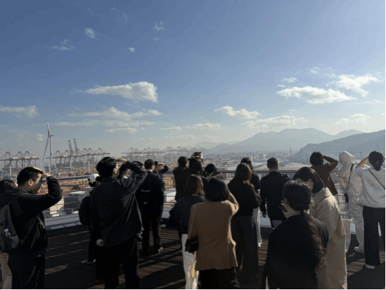 教师们抵达穿山港集装箱码头,登上观景平台近距离感受“世界第一大港”的繁忙景象。在港口工作人员的引导下,大家实地察看了自动化集装箱岸桥作业、智能调度系统运行等场景,详细了解穿山港作为“一带一路”海陆交汇枢纽的区位优势、航线布局及年吞吐量等核心数据。