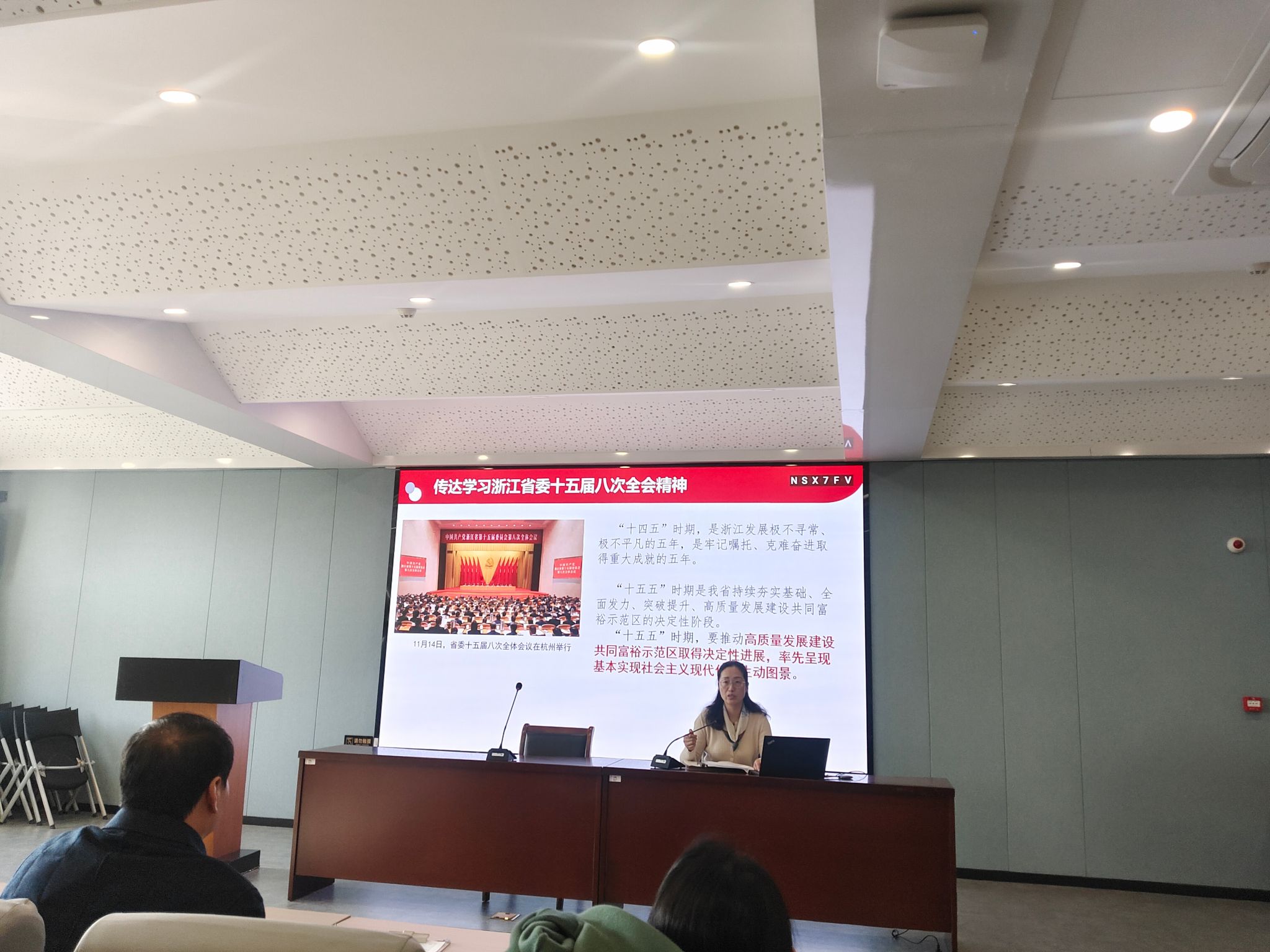 党委书记孙芬娜传达学习了党的二十届四中全会精神、浙江省委十五届八次全会精神;临近年末,提醒老师们关注年度任务考核和聘期任务考核相关要求;同时强调了事业单位工作人员出国出境和学校关于教职工校外兼职管理相关工作纪律要求。随后,副院长何跃军从科研、研究生培养等方面做了工作部署。又传达了学校研究生督导意见报告反馈的相关问题;随后开展了研究生导师专题培训学习。