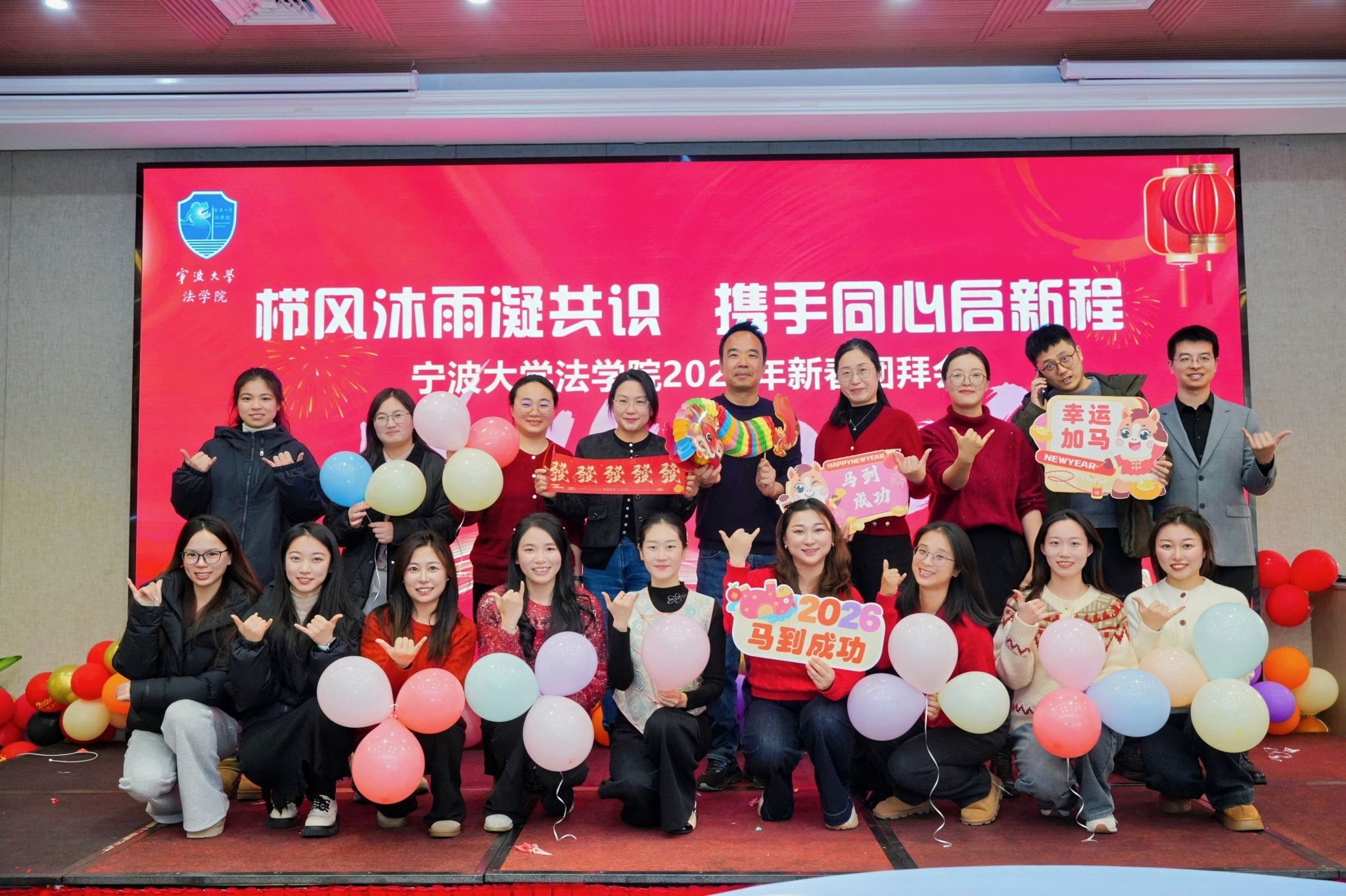 1月8日,age动漫 于age动漫 宾馆白鹭厅举办“栉风沐雨凝共识·携手同心启新程”2026年新春团拜会活动。学院党政领导班子、全体教职员工、离退休老师近百人齐聚一堂,共赴这场温暖的年度之约,一同回首往昔奋斗路,展望新年新征程。本次团拜会由张丹和陈阳两位老师主持。