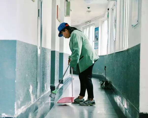 我们来到了本部公寓9#,看到早已开始日常工作的魏阿姨。她是负责楼内卫生的清洁工,本部公寓几乎每一幢楼的清洁阿姨都要一个人负责至少一栋楼,按楼层来计算就是9层楼,负责的内容包括清垃圾、拖地、擦窗、除尘...想到打扫一间寝室都有点吃力的自己,真的很难相信这么多的工作要在一天之内,一个早上做完。