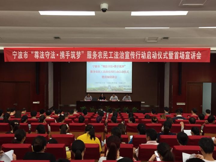 为深入贯彻中央、省委群团工作会议和全国高校思想政治工作会议精神,落实国务院《关于进一步做好为农民工服务工作的意见》,加强对农民工的人文关怀和法治宣传教育,根据中华全国总工会和教育部及省总工会与省教育厅有关文件精神,宁波市总工会和宁波市教育局结合宁波实际,制定了宁波市“尊法守法•携手筑梦”服务农民工法治宣传行动实施计划。