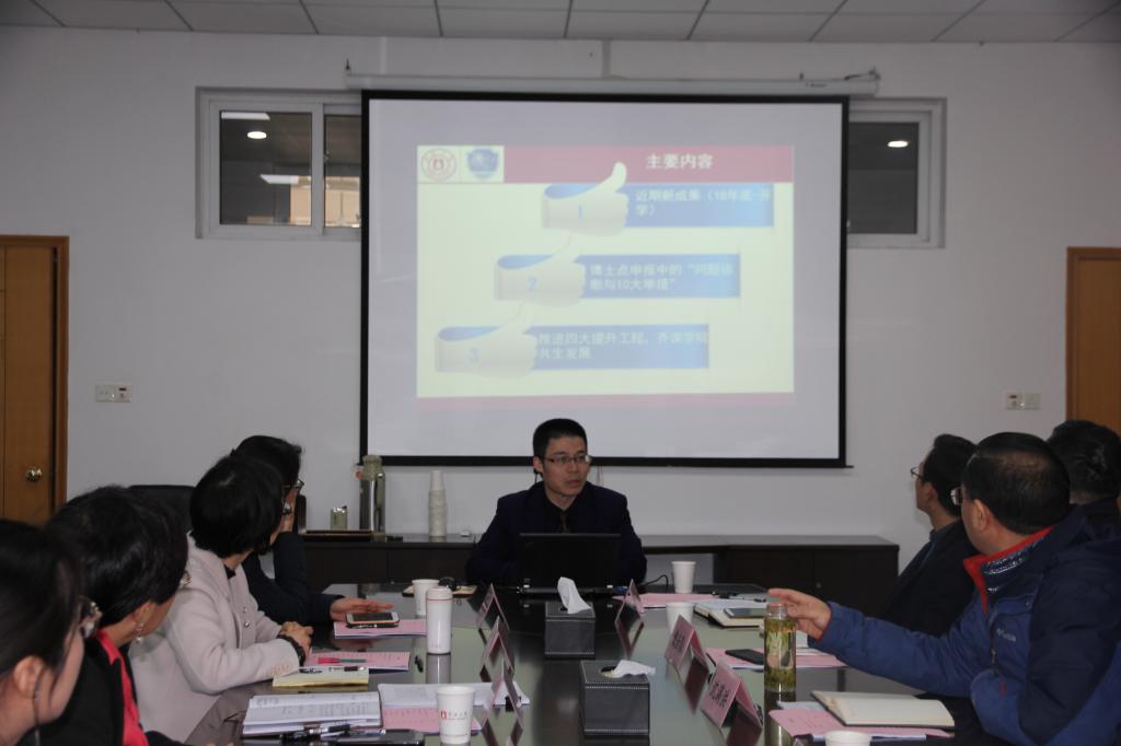 钭晓东介绍了学院贯彻学校寒假中层领导干部扩大学习会精神所做的工作部署,重点汇报了新学年工作要点。他指出,2019年学院主要工作是申请博士点的再出发,根据以前申报的问题明确定位,找到短板,对标持续推进,破解三大攻坚难题;推进“学院文化凝炼”、“诸力回归”、“系统协同”、“多推联动”四大工程,齐谋学院共生发展。同时,学院还面临人才引进及办公场地困难等问题。