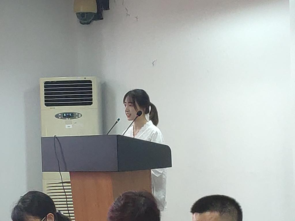 2017级硕士研究生王淑君代表老生发言。她结合自己在宁大6年的本科、研究生求学体验,向新生们详细介绍了学院的发展及学生培养的特色,分享了自己6年的成长与蜕变,寄语新生们不辜负韶华,不迷茫前方,不停止前行,不害怕困难,闯出自己的一片天地。