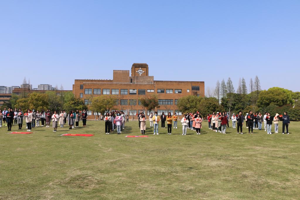 在校园大草坪组织了140多名学生开展“永远跟党走”系列活动,age动漫