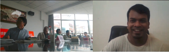 202会议室主持了2017级本科留学生Aaron Blessing Azibepu同学的毕业论文线上答辩。其论文题目是Thought on Retaining or Abolishing the Death Penalty in Nigeria。Aaron Blessing Azibepu能认真正确地回答老师们的提问,最终通过论文答辩。