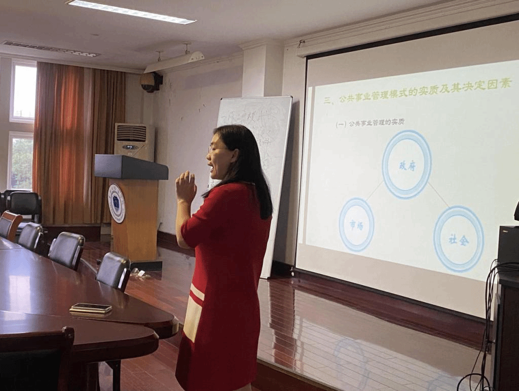 在11号楼217教室组织开展了2021年全校公开观摩课活动,学院领导、学院本科教学督导组成员、校青年教师共30余人参加。公管系王婉娟老师讲授了《公共事业管理概论》课程,本次课程主讲内容是公共事业管理的模式与体制。
