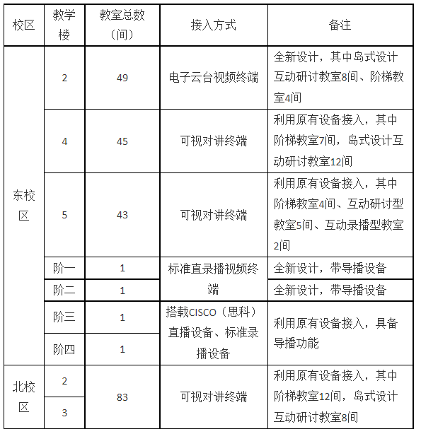 全校目前接入“云堂”教室共计224间。(详见下表)