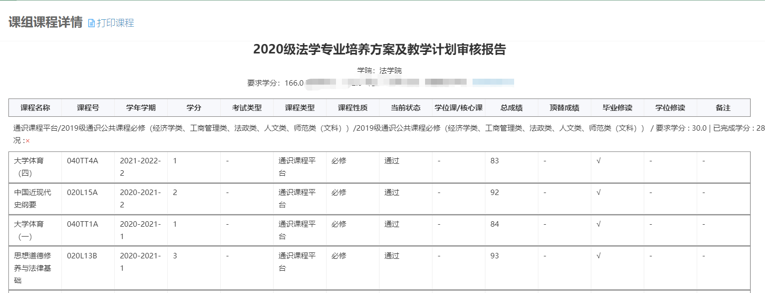 1.每个模块的学分是否完成;