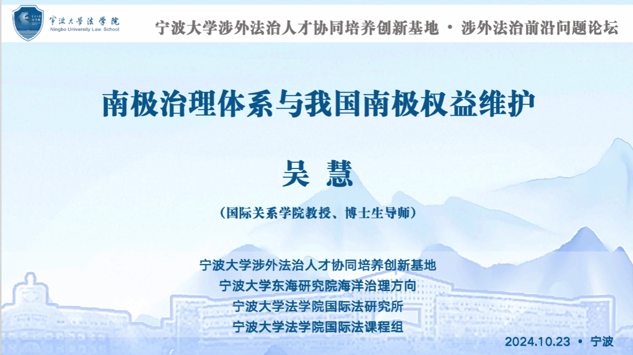 2024年10月23日晚,浙东法学讲坛第五十讲暨涉外法治前沿系列(四)“南极治理体系与我国南极权益维护”讲座在age动漫