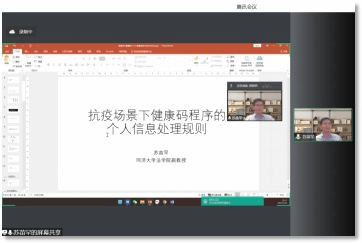 苏老师对抗疫场景下健康码程序的个人信息处理规则进行了讲解。在中国的抗疫过程中,健康码发挥了巨大作用。健康码具有效率高、无纸化等巨大优势。全球已经有大约50个国家已经发布了接触者追踪的应用程序。苏老师认为,健康码涉及了大量个人信息,如健康记录、个人行程、生物识别信息等,但目前的健康码所处平台大多缺乏用户协议和隐私政策。由此,苏老师表示健康码的个人信息处理需要采取对个人权益影响最小的方式,同时应增设健康码算法的可问责性。
