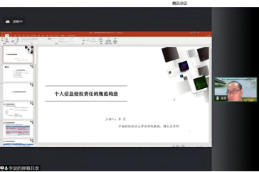 李昊老师先对王老师的报告中有关个人信息保护的公法和私法属性进行了讨论。接着,李老师开始向我们介绍个人信息侵权责任的规范构造。李老师通过对《个人信息保护法》和《民法典》中相关法律条文的规范内容进行分析论证,向我们展示了个人信息侵权责任的体系关联,也揭示了个人信息保护的私法属性。最后,李老师介绍了个人信息权益的侵害样态和由此产生的损害,非法的个人信息处理行为对个人信息权益的侵害本质上应是对其自主价值和使用价值的侵害;对于侵害个人信息权益的损害认定,应借鉴《最高人民法院关于确定民事侵权精神损害赔偿责任若干问题的解释》第5条规定的前3项标准,即侵权人的过错程度、侵权行为的目的、方式、场合等具体情节和侵权行为所造成的后果来综合判断。