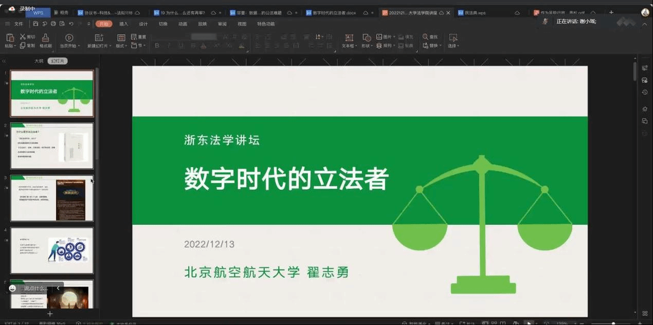 12月13日晚,浙东法学讲坛第九讲暨宁波立法研究院法学名家讲坛第31讲“数字时代的立法者”主题讲座通过腾讯会议以线上方式顺利举办。