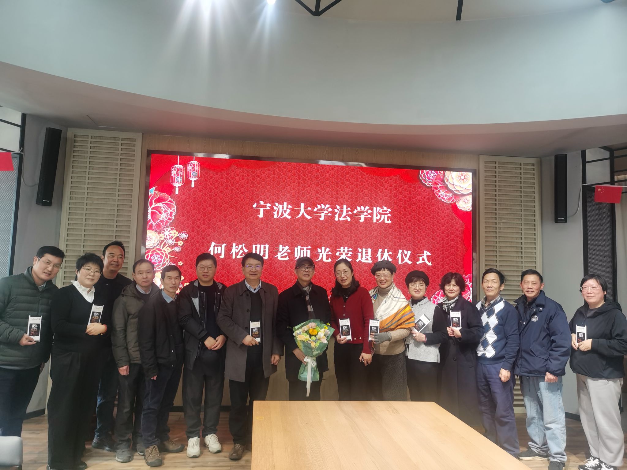 在校友之家为何松明老师举行荣休仪式。学院党委书记孙芬娜、工会主席王伟及学院教师代表参加仪式。仪式由党委书记孙芬娜主持。